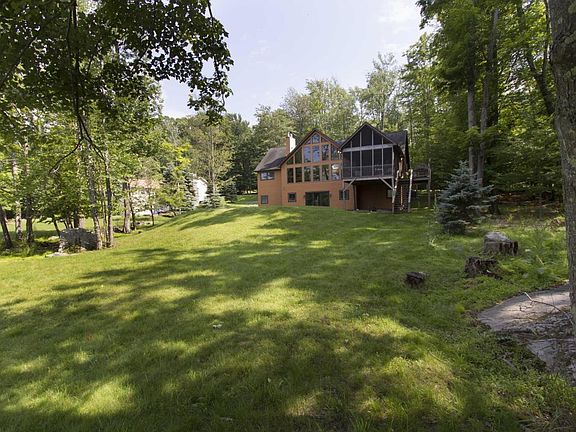 With exceptional attention to detail, this 3+ bdrm, 3 bath lakefront contemporary was built w/the lake views in mind! Paupackan Lake welcomes you when you walk through the main entrance into the LR w/ a wall full of windows! Features include stone FP, modern kitchen that's designed for a chef, main level master suite, lower level rec room, attached garage, beautiful gardens, a tree-fort-like screened porch & so much more! Level lake frontage on a quiet mountain lake. Outstanding design!