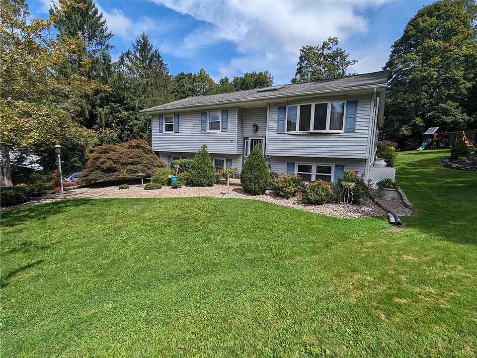 Pride of ownership shines on this gem! Nestled on a private cul-de-sac with professional landscaping and paver walkways. Great entertaining layout provides an open & airy feel and offers a large living, dining room, great room all surrounded by the heart of the home, the kitchen. Kitchen offers wood cabinets with ample cabinet and counter space, granite counters, island with storage, and tile back splash. The sun-drenched great room with sliding doors leads to the oversized deck overlooking the pool and secluded park like yard. 3 nice size bedrooms and a full bath complete the first floor. Lower level has a spacious family room, bedroom (open to the family room), half bathroom and large laundry room. Features include hardwood floors, updated kitchen, new HVAC system, new water heater, recessed lighting, custom woodwork, central air, shed, storage, deck, patio, driveway, attached garage and so much more. Minutes from Woodbury's recreational facility "The Rez" a gorgeous lake with white sandy beach, summer camp program, the Woodbury Community Pool and public golfing at the Falkirk Estate and Country club! Fantastic commuter location - 55 miles to NYC, near train to NYC, 87, 17, Palisades Parkway, Shopping, Woodbury Commons & Restaurants! All this and desirable Cornwall School District! Additional Information: Amenities:Storage,ParkingFeatures:1 Car Attached,