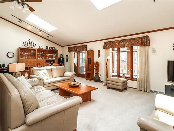 This Contemporary cedar and brick sided Ranch features a large, open great room with a vaulted ceiling, 2 skylights (with remote controlled blinds), a beautiful Cherry kitchen with solid surface counters and a skylight. The bedrooms have gorgeous hardwood floors with a walk in closet and vaulted ceiling in the main bedroom. The huge 13x22 enclosure has a wall mounted gas heater for the cooler months and provides great space for entertaining or relaxing and easy access to the multi level deck that overlooks the spacious backyard! The finished 2.5 car garage has a tile floor, a furnace, a separate workshop and a Powder room! Need more space? The rec room in the partially finished basement has a full bath, kitchen area and plenty of options. The whole house generator provides peace of mind in bad weather and you'll enjoy the conveniently located 1st floor laundry. Additional amenities and upgrades include a front paver patio and walkway, an extended garage overhang, shed with power, roof & gutters 2015, furnace and AC 2016. Whether indoors or outdoors, front or back, this lovely home has plenty to offer! The hot tub is not functional. Delayed negotiations until May 2, 2021 at 6:00 pm