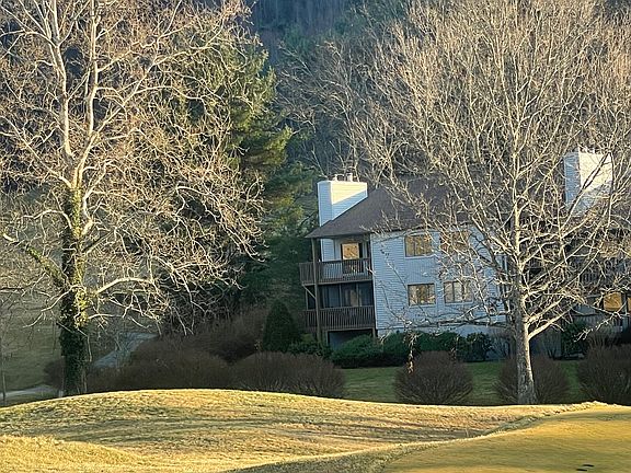 Mountain Life at its finest: 4-season views, modern comfort, unmatched location! Nestled in charming Waynesville this beautifully updated end-unit offers a perfect blend of comfort, style, and breathtaking scenery. Arguably the best vantage point in the entire complex, bask in panoramic views at the newly renovated Raines/Hilton Golf Club from your private balcony. Spacious great room features a cozy wood FP, built-in wet bar, and sliding glass doors leading to the balcony creating an ideal space to entertain & relax. The modern kitchen boasts granite countertops and SS appliances. The primary suite includes its own access to the deck through sliding doors, while both bathrooms have been tastefully upgraded with tile, vanities, lighting & new toilets. Fresh interior paint throughout enhances the bright, openness, and every window has a stunning view. Additional highlights: Separate laundry room; ample closet storage; detached carport, and access to a community clubhouse w/ heated pool.