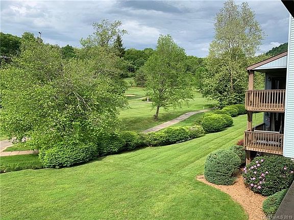 The Greens is centrally located with most area businesses, Main street shops, and churches within a mile drive. The Waynesville CC is beautiful and close by. This fine condo is on the 3rd level but only a few steps up from the parking area due to the 1st level being below grade for the most part due to the topography. The view is great because it is an end uint with a side 'bay window' with a box feature giving much more light and a feeling of openness lacking in most regular units. The view from the master bedroom is greatly expanded as well as the kitchen because of the extra windows. This feature alone is almost priceless!This gives exceptional views of the surrounding mountains, the golf course and a stream below. Very clean and recently updated with laminate wood flooring in most areas, vinyl tile in the kitchen and ceramic tile bathrooms. Spacious and open living area is well-thought out with plenty of closets and easy access. Move in ready with everything you desire. Come experience condo living at its best in a beautiful setting close to town and all the area offers!
