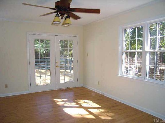 Charming one-level home on private 1/2 acre fenced lot. Hardwood laminate flooring, crown molding throughout, ceramic tile floors in bath. Large master suite with spacious walk-in closet. Vaulted ceiling in living room & kitchen. Large deck with direct access from master bedroom & kitchen. Unfinished attic with flooring & shelving for added storage.