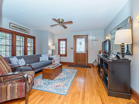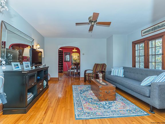 Charming and cozy Cape in the much sought after Roosevelt Park area of the City of Kingston. This well-maintained home features many lovely details, such as hardwood floors, original woodwork and doors with glass doorknobs, curved archways, corner china cabinets and custom radiator covers. The first floor offers two bedrooms and the full bath. As you head upstairs, you will be impressed with the large, bright primary bedroom with new vinyl plank flooring and exposed brick chimney. The space can be separated into two or three spaces. allowing for sleeping, lounging and work spaces. So many custom built-in cabinets upstairs, making good use of all the space. Even the railing at the top of the stairs is removable, for ease of moving furniture upstairs. The kitchen was recently updated with custom, wood cabinets, granite counters and stainless steel appliances. The basement level is semi-finshed and perfect for a recreation/playroom, office or space for a gym. You will find the large laundry area on this level. Step out the kitchen door to a two-tier deck, with a covered portion for dining or relaxing. The fenced-in, level backyard is ideal for play, pets or gardening with a handy shed with electric. The records list a 1-car, attached garage, but this space has been converted to a great workshop and more storage. Roosevelt Park is a quiet neighborhood where you can enjoy walking, jogging or biking. Just a short walk to Loughran Park, offering pickleball and tennis courts, or the ballfield and only minutes to all that Kingston has to offer, shopping and commuter routes or the Amtrak station in Rhinebeck/Rhinecliff.