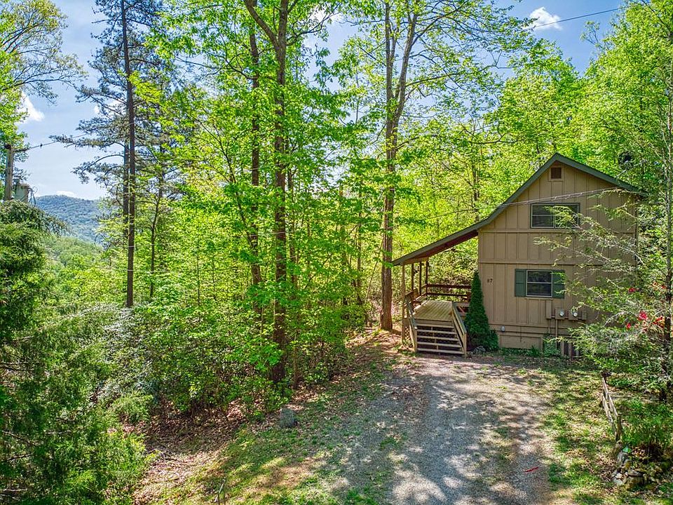 Beautiful. Secluded. Close to nature. This Cottage lifestyle in the Smoky Mountains boasts creek frontage front porch living in its essence. With beautiful long range views easily accessible with 2 wheel drive residing on 2.69 unrestricted low maintenance acreage. With beautiful heart pine custom cabinetry and warm nights by the fireplace this vaulted ceiling home feels open yet cozy. The loft area is currently being used as a bedroom with additional closeted storage space. Multiple storage buildings allow options for workspace or that extra room needed for your toys. Included in the sale is tractor with scrape blade.