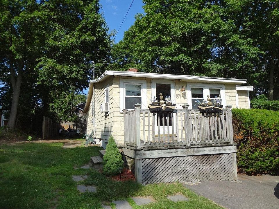 MUST SEE! Situated in Hingham’s desirable Crow Point neighborhood, walking distance to the private community beach, public transportation (commuter boat) and elementary school. Completely redone on the inside with an updated kitchen, first floor laundry, updated bathroom and mud room. Two bedrooms with 2 closets each. Also includes an unfinished basement with gas heat (forced air) and new hot water heater, as well as a detached garage.