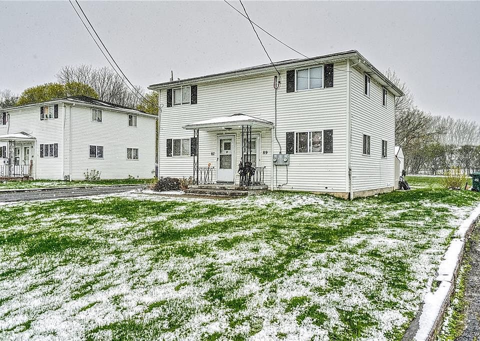 Built as a true side by side! Back and front entry areas have coat closets. Kitchen has a pantry in the back hallway! Eat-in kitchens. Stove and refrigerator remain, all other appliances are the tenants. Open peek through from kitchen to living room. 2 bedrooms up, large main bedroom with 2 closets. 2nd bedroom is good size with a double closet. #87 has gas stove, newer laminate vinyl plank floors and newer carpet. Very nice condition! #89 has electric stove, laminate and vinyl plank flooring, white tiled shower and tile above vanity. Tenant was refinishing hardwoods up. Sheds belong to the tenants! This unit had some damage in basement but has been fixed. Very nice, clean units! Full Basements, gas forced air furnaces and hot water tanks. Laundry with electric dryers. Beautiful lot with tons of parking in back and along side of driveway. 81-83 and 91-93 Wright Rd are also for sale. Specific Showings are: Sunday, 5/2 12-1:30, Monday, 5/3 4-5:30, and Wednesday 5/5 9-10am only! Must be with an agent, or register prior to the showings. All offers due by noon on Thursday, 5/6.
