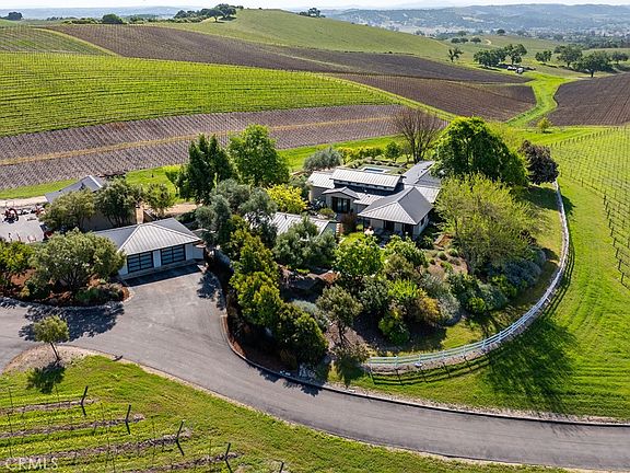 Experience ultra-luxurious vineyard living in Westside Paso Robles’ coveted Willow Creek District. Bright, beautiful, and breathtaking—wake up to scenic vistas of rolling green vines and ancient oaks. Only moments from downtown Paso, you found an incredible opportunity to define your own wine country lifestyle. This 26 acre property offers it all from a 17.5 acre Vineyard and Winery to a high-end design home, guest house and shop. Make your signature mark with a 3,000 sq. ft. Winery complete with a use permit to process up to 3,000 cases of wine per year, store case goods, and conduct public wine tastings. Willow Creek is a renowned producer of Rhône style wines in the Luxury wine category. Planted varieties include: Syrah, Grenache, Mourvedre and more. The impressive primary residence is a licensed vacation rental , and features 3 spacious ensuite bedrooms with private patios and exquisite designer taste throughout. A celebrated interior designer and NFL veteran are current owners who built in every possible amenity. From expansive windows with epic views to luxe Cumaru wood floors and steam shower—you found the ideal retreat to relax and unwind. The gourmet kitchen features custom cabinetry and quartzite countertops along with a new Wolf range and professional series appliances. Luxe touches also include a wine cooler, multiple sinks, and walk-in pantry. A 14’ grand island seats 7 and you'll find generous space to entertain in the dining room, complete with a Mooii pendant chandelier. Practical features include whole house water filtration, water softener, and zoned AC/heat and Lutron lighting system. Discover gorgeous gardens and mature landscaping highlighted across the property. Fruit trees, olive trees, and berries are plentiful. Bonus features include a sustainable pond and heated salt water pool with a large spa that seats 8. Indulge in alfresco dining on the stylish back patio off the kitchen complete with a fire pit and BBQ area. The inviting Guest House includes a lovely living area with vibrant views. A 1,000 sq. ft. multi-purpose workshop and studio offers additional space to get creative. 480 Volt underground electric and fiber optic WiFi LAN offer reliable connectivity across the property. Reliable well and water resources include a system of tanks and storage for fire suppression. The epitome of vineyard living at its finest, you found a dream that’s yours to savor in exclusive Paso Robles wine country.