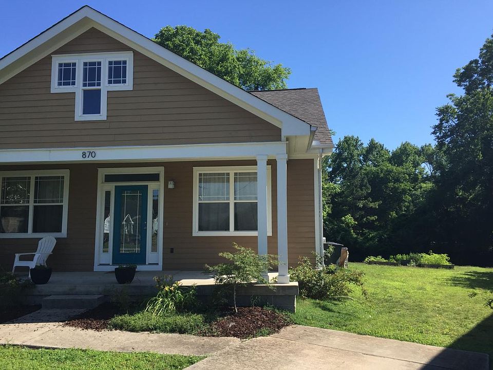 This house sits at the end of a quiet, little cul-de-sac in East Nashville. There is a lovely porch, large yard and garden, and the back yard leads to the forests of Shelby Bottoms--perfect for quiet walks. There is also a detached 200 square-foot studio in the backyard, perfect for an art studio, den, or just storage. The neighborhood consists of young couples and families. The neighborhood children ride their bikes and leave them in their yards. We (the owners) live next door, and we're looking for renters who are drawn to the kind community of Beth Drive!