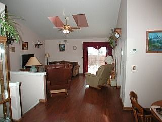 Open Contemporary Design! Vaulted Ceilings! Skylights! Neutral Decor! AC! Pergo Flooring Entry/Kitchen/DR/Great Room/Hallway! Tile Floors Laundry Rm/Baths! Eat In Kitchen w/Bay Window Nook/Tile Countertops! Formal Dining Rm! Great Rm w/Walkout to Lge Patio! Finished Bsmt w/Family Rm/2 Bdrms/Full Bath w/Double Sink Vanity! Garage Service Door to Extra Patio! Mature Trees/Lilac Bushes/Perennials!