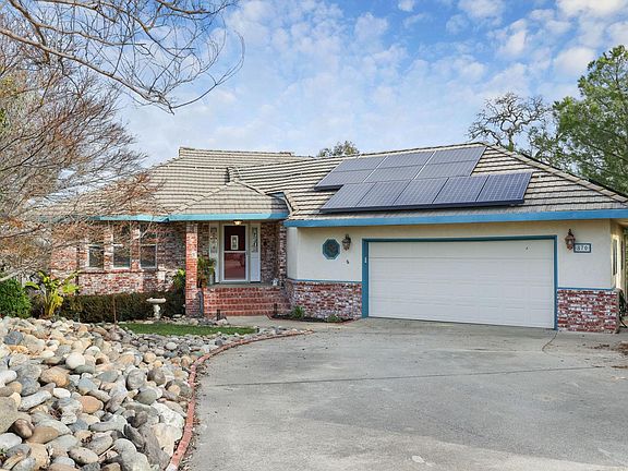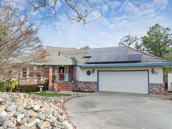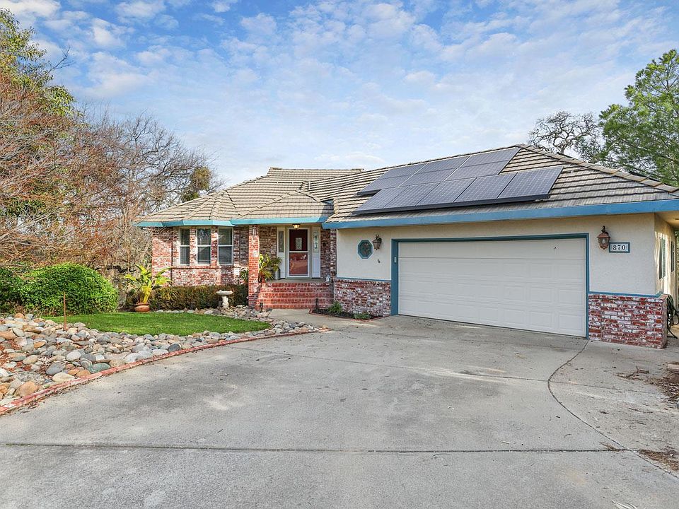Nestled in a tranquil cul-de-sac, this contemporary 2-story home offers a harmonious blend of comfort and nature. The main level features a spacious primary suite and an open-concept living area, seamlessly connecting to a wraparound deck that invites you to unwind and enjoy scenic views. The lower level boasts two additional spacious bedrooms and a cozy family room with an additional deck, providing ample space for relaxation or entertainment. Recent updates include new carpet, sleek new granite kitchen countertops and modern stainless steel appliances, enhancing the home's appeal. Energy efficiency is prioritized with owned solar panels, reducing utility costs and environmental impact. Oversized two car garage with additional parking on the side. Conveniently located within walking distance to New Hogan Lake and just a short golf cart ride to La Contenta Golf Course, this home is perfect for outdoor enthusiasts. Whether you're boating, golfing, or simply enjoying the serene surroundings, 870 Carson Drive offers a lifestyle of leisure and comfort.