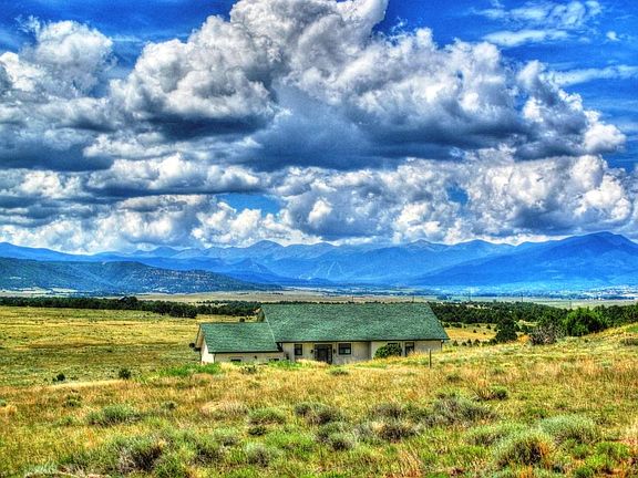 Beautiful immaculate 2 story home with Hacienda de Serenidad. 3,970 sf. of incredible living area, 10 foot ceilings, fireplace, electric heat, 3 car attached garage and many other features. Located on 70 acres with wonderful views of the Spanish Peaks, gazebo in the pinons, and numerous walking paths. No H.O.A.dues. A nice larger recreational ranch or horse property. Deer and antelope viewing too.