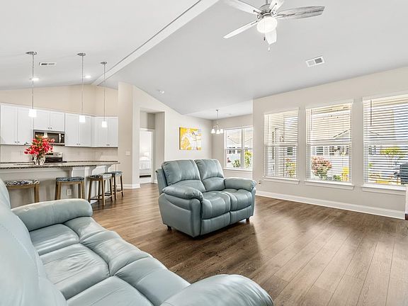 Welcome home to this move-in ready 3 bedroom, 2 bathroom home in the highly sought after neighborhood, Park Place at Market Commons. This home features upgraded LVP flooring and tall vaulted ceilings throughout the main living areas, with a spacious open floor plan to maximize the space. The kitchen is equipped with all stainless steel appliances, granite countertops, a work island with a breakfast bar, and a pantry for extra storage, with the living room and dining room all connected. All bedrooms are located on the first floor and offer plenty of closet space with easy access to a full bath, while the master also offers tray ceilings, a large walk in closet, and private master bath with double sink vanities and a luxurious tiled walk in shower with a bench seat. A mud room leads to the 2 car garage, adding plenty of extra storage, parking, & convenience. Enjoy afternoons relaxing on your extended back patio in the privacy of your fenced in backyard, or socializing with friendly neighbors at the community pool. Located within walking distance or a short golf cart ride to the famous dining & shops of Market Commons. Market Commons is a walk-bike-golf cart friendly community offering restaurants, movie theater, bowling alley, gyms, playgrounds, ball fields, walking trails, picnic areas, dog park, fishing ponds, and so much more; All just 5 minutes to the beach, the state park, and more! You won't want to miss this. Schedule your showing today!