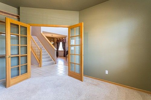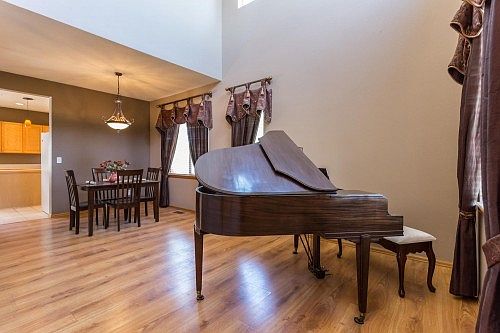 Former Model Home! Cozy family home! Fantastic finished basement with rec room theater/bar area, exercise room and bedroom! Corner lot! Main floor study! Cozy four bedroom, four bath home with great layout and vaulted ceilings! Home has completely finished basement with recreation space, theater room space, wet bar, bedroom and 3/4 bath. Main floor has study, eating space, formal dining, living room and family room! Fantastic back deck opens out to your own private putting green...great space for entertaining! Walk to elementary school and Ridge Golf Course/ Restaurant and bar! Seller to offer a 1 year Blue Ribbon Warranty!