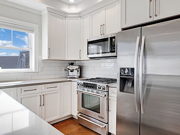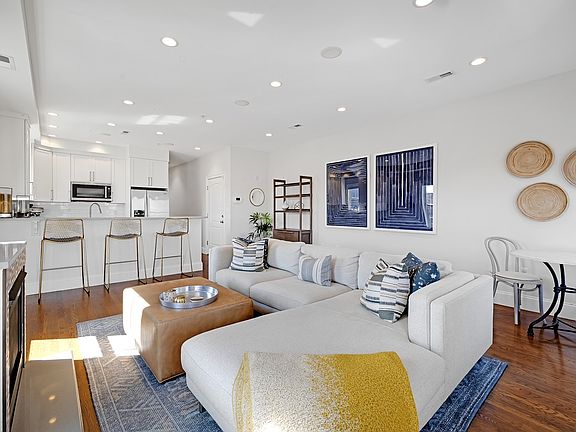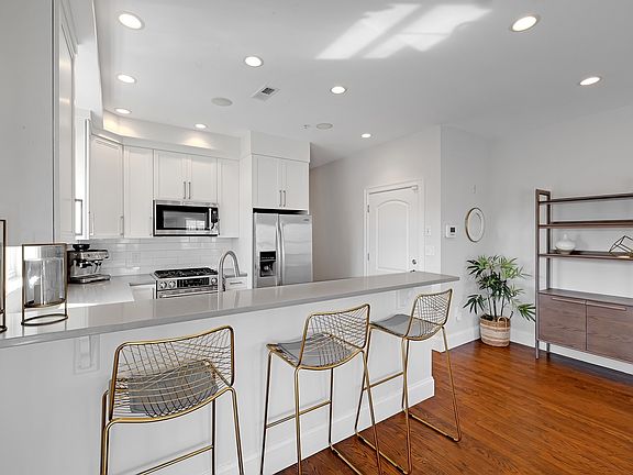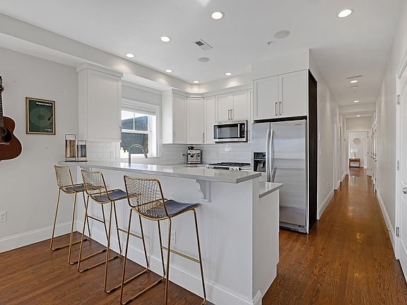 Sun filled 2 Bed 2 Bath featuring modern amenities, private roof deck and stunning views. This condo available for rent features high quality finishes throughout including quartz counter tops, stainless steel appliances, hardwood floors, central air and laundry in unit! The living room and kitchen boasts an open concept which is sun filled and spacious. Additionally, there is an electric fire place in the living room and a 2nd deck off the living room. The master bedroom is large with ample closet space and a master bath which features a walk-in shower, a tub and double vanity. The apartment also includes a parking space in the rear of the building. Move in date may be flexible, reach out for more options.