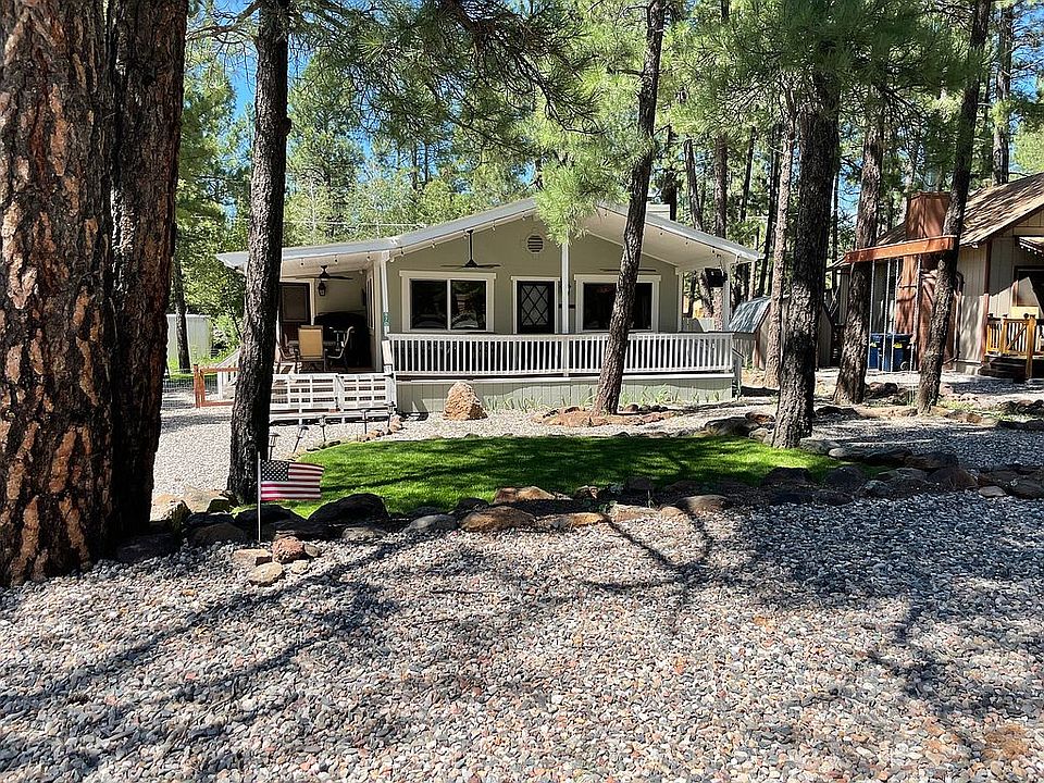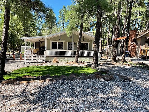 THIS BEAUTIFUL MOUNTAIN SITE BUILT CABIN HAS BEEN REMODELED FROM TOP TO BOTTOM AND FRONT TO BACK WITH NO EXPENSE SPARED. FROM THE TIME YOU PULL UP YOU WILL NOTICE THAT THE LOT IS FULLY LANDSCAPED WITH FRONT AND BACK KENTUCKY BLUE GRASS, 5 PARKING SPACES IN THE FRONT, SWINGS FOR THE KIDDOS, TONS OF PINE TREES AS WELL AS TWO PRODUCING APPLE TREES, A FULLY FENCED BACKYARD FOR YOUR FOUR LEGGED FRIENDS TO ROAM SAFELY, A WRAPAROUND FRONT PORCH WITH TWO TVS, FANS, BISTRO LIGHTING, AND AN EATING AREA, A GENEROUS BACK PORCH, ROOM TO STORE A TRAILER, AND A NEW 8X8 TUFF SHED. ONCE YOU COME INSIDE, THIS HOME REALLY SHOWS ITS VALUE. IT HAS THE LATEST COLOR PALLET AND IS HIGHLY UPGRADED. THERE IS NEW LAMINATE FLOORING THROUGHOUT AND NEW CARPETING IN THE BEDROOMS. THE CABIN HAS CUSTOM PAINT, NEW WINDOW TREATMENTS INCLUDING SHUTTERS IN THE BEDROOMS, NEW 5 INCH BASEBOARDS, ALL NEW DOOR CASINGS/DOORS/HARDWARE, AND A MITSUBISHI MINISPLIT AIR CONDITIONING/HEATER. THE FULL KITCHEN FEATURES ALL NEW SAMSUNG STAINLESS STEEL APPLIANCES(FRIDGE/RANGE/MICROWAVE/DISHWASHER), NEW WHITE CABINETS WITH GRANITE LOOK COUNTERS, A SIGNLE DEEP/WIDE/ SINK, RECESSED LIGHTING AND A CONNECTED EATING AREA. THERE IS A LAUNDRY ROOM WITH NEW CABINETS AND HOT WATER HEATER AS WELL AS A WASHER AND DRYER. THE LIVING ROOM FEATURES A 55INCH TV, RECESSED LIGHTING, A BEAUTIFUL WOOD FIREPLACE WITH STONE AND SHIPLAP, AND AN ENTIRE ACCENT WALL WITH SHIPLAP AS WELL. THERE IS A TON OF NATURAL LIGHT AND PASS THRU BREEZE WHEN YOU OPEN THE ALL NEW PELLA DOUBLE PANE WINDOWS. THE BATHROOM WAS A COMPLETE REMODEL FEATURING A NEW TUB/SHOWER, TOILET, AND VANITY ALONG WITH CUSTOM TILE WORK. THE SPARE BEDROOM IS SPACIOUS ENOUGH FOR A FULL BED AND A SET OF BUNKBEDS AS WELL AS A LARGE CLOSET. THE MASTER FEATURES A QUEEN BED WITH NIGHTSTANDS. ALL ROOMS HAVE MOUNTED FLATSCREEN TVS WITH SATELLITE. THE HOME ALSO FEATURES WIFI. THERE ARE ALSO IMPROVEMENTS THAT ARE NOT AS EASILY SEEN SUCH AS THE NEW 12 INCH INSULATION LOCATED IN THE ATTIC AS WELL AS UNDER THE CABIN, THE NEW CEMENT BOARD PAINTED TO MATCH CABIN SKIRT, AND THE NEWER ROOF WHICH IS ONLY 5 YEARS OLD. LOCATED ON A QUIET STREET WITH WELL SPACED LOTS AND FRIENDLY NEIGHBORS MAKES THIS A GREAT PLACE TO COOL OFF IN THE SUMMERS OR GO SNOWBOARDING IN THE WINTERS. MUNDS PARK HAS EVERYTHING YOU NEED WITH A POST OFFICE AND HOME USPS/UPS/FEDEX/AMAZON DELIVERY AVAILABLE, LAKE ODELL, AND NUMEROUS RESTAURANTS FROM PINEWOOD, TO AGEES BBQ, BARACHOS SALOON, AND MARTINOS HIGH END ITALIAN CUISINE. THERE IS ALSO A MARY COYLES IF YOU FEEL LIKE ICE CREAM. FLAGSTAFF IS ONLY A 20 MINUTE DRIVE AND SNOWBOWL IS A SHORT 35 MINUTE DRIVE. TRULY THE PERFECT LOCATION!
