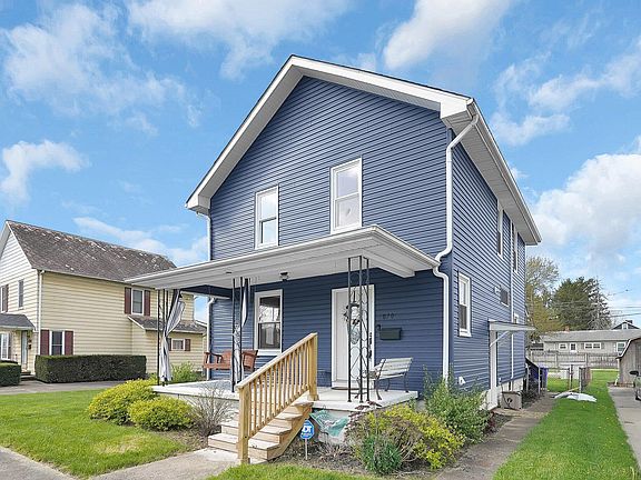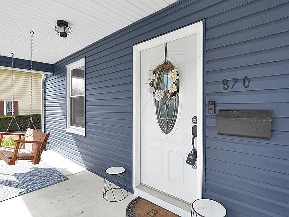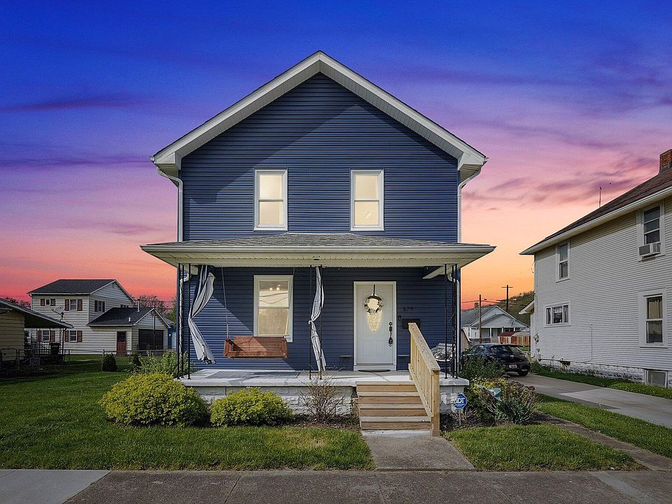 Look at this beauty with bold blue siding and fresh landscaping - so much curb appeal! This home welcomes you with a covered front porch, perfect to enjoy the porch swing.