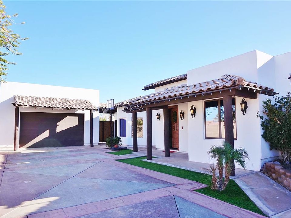 Beautiful custom home in Somerton. Landscaped over 1/4 acre lot, detached garage, stamped concrete driveway and sidewalks, large wrap around patio with great views of the valley, lots of peeler poles and then step inside the home with high ceilings, tile and wood flooring except carpet in bedrooms. Formal dining room, kitchen with granite counter tops, high end 6 burner gas range, Living room with fireplace and French Doors . Can be 3 bedroom with den or 4 bedroom by installing a closet.