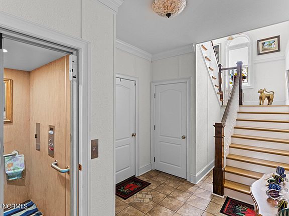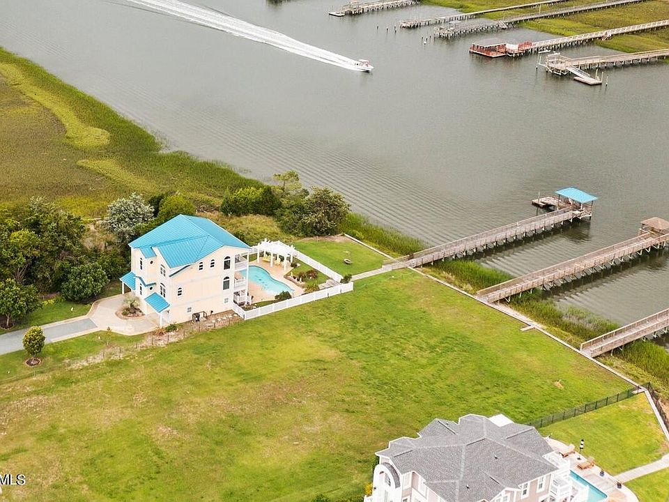 Many boats and a few cars at this fabulous waterway home on a quiet street. A pier, floating dock, bulkhead, custom swimming pool, custom pergola, landscaped yard, concrete parking area, stone/slate driveway, outside shower, fenced back yard and more! Double porches overlooking the water, real oak and tile floors, metal roof, elevator, luxury kitchen, custom cabinets and counter tops and more provide comfort and pleasure. The open living/kitchen/dining area provide interesting water views. The two garage areas have ample space plus a family gathering room. Fish from your own dock!