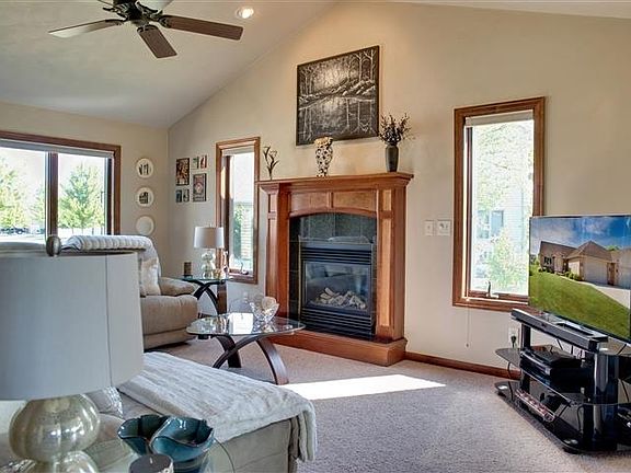 Beautiful like-new home that has been well cared for and maintained! Enjoy the open concept, beautiful woodwork, fireplace with granite surround and carved wood mantel, archway with wood pillar that frames the large dining and kitchen, and hearth room seating area. The kitchen has a large island with seating. First floor also has lockers, a full laundry room, two bedrooms and two full baths. Open stairway leads to a Family Room, third bedroom and third Full Bath in lower.