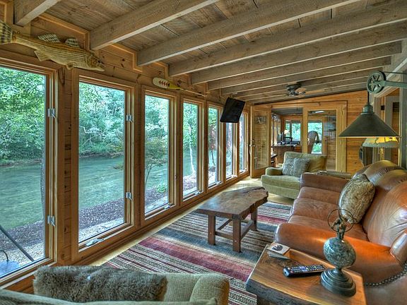 Do you dream of fishing, kayaking, tubing, paddle boarding or watching the sunset on the water right outside your back door? A rare find 1.64 acre flat lot with walk in access to 220 of Toccoa River frontage! This 4 BR, 3 BA 2,600 sf home boasts a wall of windows across the entire back of the house: water views from nearly every room including the kitchen, eating area, two living areas, home office, master bedroom, screened in porch and secondary bedrooms. Stainless kitchen appliances. Granite in kitchen and master bath. Upgraded cabinetry in all bathrooms. Relax in the adorable treehouse accessible by a rope bridge. Hot tub. You have to see it to believe it! Dont wait this lovingly maintained property will not last! 15 minute drive to downtown Blue Ridge and 5 minute drive to downtown McCaysville. 25 minute drive to Ocoee Whitewater Center, the site of the 1996 Summer Olympics. Only 0.2M gravel!