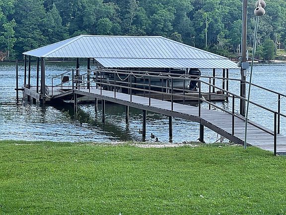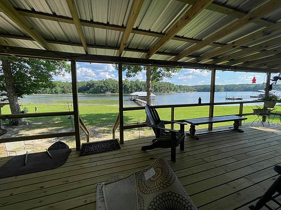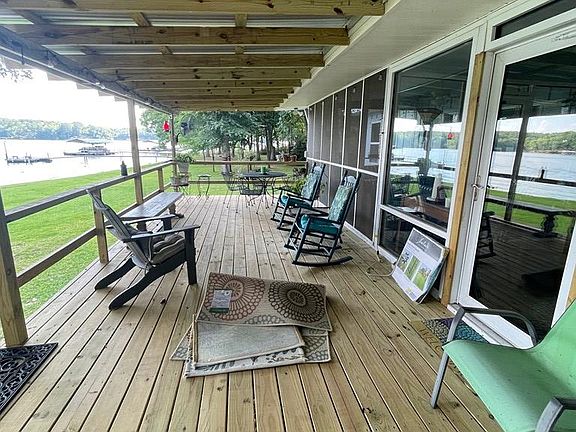 Steps to the water to 4 year old covered dock on a very level lot. Glassed sunroom, screened porch, and covered deck create perfect outdoor living space. 3 BR, 2 BA. Too many updates to list from newish roof, HVAC, home addition to enlarge primary bedroom and add walk in closet. New exterior paint, kitchen update, and new flooring throughout. Wood fireplace in living area is so nice in the winter. Thomas Mill Creek is a great place to play and LIVE. Must see property.