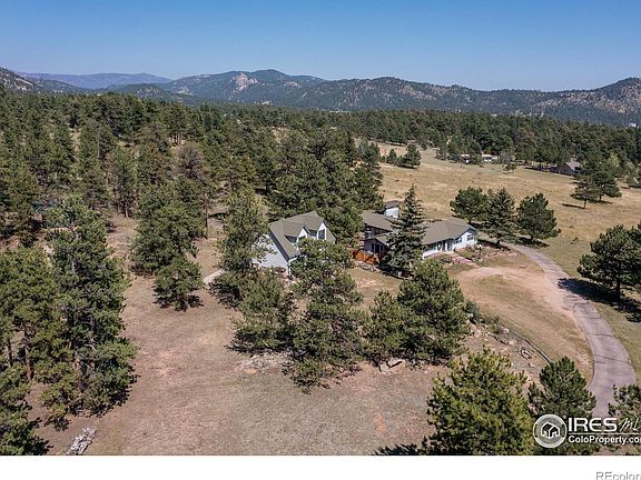 Rare location and incredible views with rock outcroppings and mature trees.  Main level living with no stairs, open floor plan and updated kitchen.  Easy to add on to plus detached garage has unfinished upper space that could be made into another living space not in the total sq ft.Attached 3 car garage plus detached 2 car garage.  One of the nicest locations in Estes, close to everything but totally private setting.
