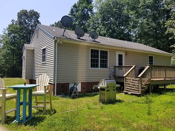 Ranch style house on almost 10 acres with front porch, rear deck, 3 bedrooms, 2 baths, carport, and outbuildings located in a very private area within commuting distance of Richmond or Tappahannock. On the Essex/King and Queen County line.