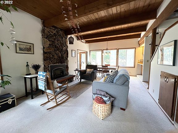 - Features: Beamed Ceilings, Fireplace Insert, High Ceilings, Vaulted Ceiling, Wallto Wall Carpet