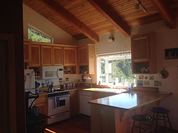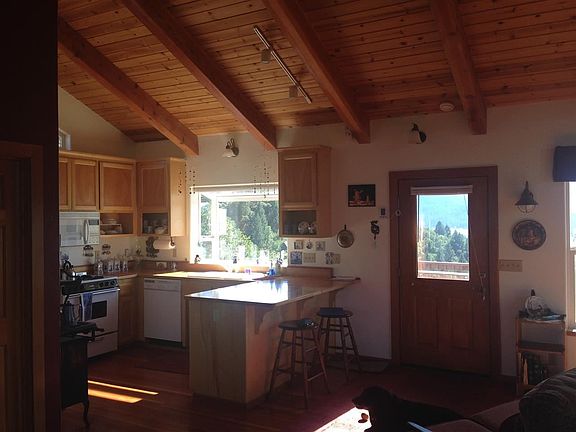 Privacy and seclusion await you! This custom built home is a idyllic setting where outdoor living can be enjoyed all year long. The home is situated on 5+acres and features a open floor plan with knotty pine vaulted ceilings, bright & spacious kitchen with lots of natural sunlight, hardwood floors throughout with the exception of tile in the bathroom, well insulated, wood stove in the living room. Outside is RV parking area with hookups to power & septic, 2 storage sheds including a woodshed.