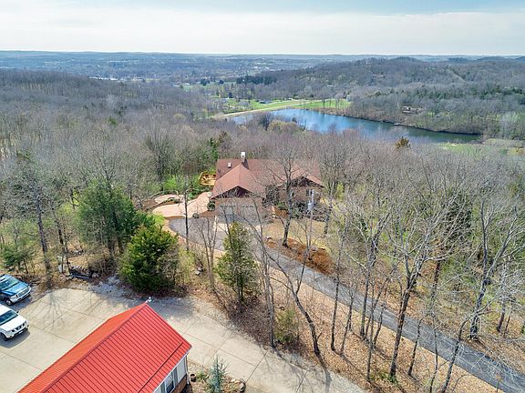 (Be sure to click the blue VIEW VIRTUAL TOUR link below) Your private retreat awaits! This sprawling 4 bed, 3 bath walkout ranch a top a hill on 2.3 acres gives pristine views from every angle. This flex floor plan enters into the main living room with vaulted ceiling, skylights, floor to ceiling fireplace and dining space overlooking the wooded lot. Open, cheery kitchen with eat in breakfast area has granite counters, custom island and stainless appliances. Office is quietly tucked away off the main living room. Master bedroom suite with ensuite bath including jetted tub and walk in shower. Two additional spacious bedrooms and a full guest bath round out the main level. The lower level has ample finished space with a family room, rec area, wet bar, fourth bedroom and full bath. Dual sliders for easy access to the multi-tiered back deck. The outdoor entertaining options are endless with an expansive stamped concrete patio and fire pit area. Additional amenities include main floor laundry, two car garage and access to the subdivision lake.