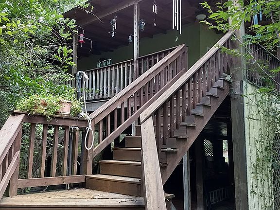 49 ACRES w/ beautiful creek, 3B/2B home 1910 sqft built in 2002. Open floor plan, living, kitchen, dining flows into sunroom. 9' ceilings. House elevated/full storage under with 2 vehicle bays. 880 sqft of covered wrap around deck. Wonderful shallow creek, several rope swings and 8x16 elevated hunting/repelling/observation deck. 2 miles of trails. Mostly mature pines, some pasture & hardwood. Great recreational property. Additional space 880 sqft cottage sleeps (6)