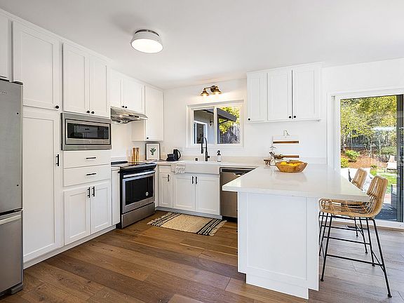 This spacious 1,608 sq. ft 3bd/2 bath house is located on a quiet cul-de sac near open space. The kitchen has a large dining area with sliding door that opens to back yard. Kitchen has lots of cupboards, electric stove, oven, refrigerator, and dishwasher. Large living room with fireplace and sliding door to front deck which has views of hills and Mount Tamalpais in the distance. Long hallway has a large closet and separates the living space from the bedrooms. Freshly painted and new flooring throughout the house. Bathroom has double sink, tub/shower and a mirrored closet. Large master bedroom has double closets, access to back yard and ensuite bathroom with shower. Backyard is private and borders open space. Downstairs is a double car garage with washer and dryer and direct access from the house. Landscaped front and back yards. Sorry no pets. Perfect San Rafael/Terra Linda location close to parks, schools, shopping, restaurants, farmers market and public transportation. Easy access to highway 101. ADDITIONAL TERMS: Lease term 12 months. Security deposit is 1.5 times monthly rent. $40.00 application fee per applicant. Proof of income required. Tenant pays all utilities and responsible for yard upkeep. No smoking. A LITTLE MORE ABOUT SAN RAFAEL: San Rafael still looks to the future thanks to a vibrant downtown redevelopment effort. The focal point of downtown is the Smith Rafael Film Center, which features a stateof-the-art multiplex cinema that screens independent and foreign films. Cuisine is eclectic: within a few blocks of 4th Street diners can find sushi, Indian, Thai, Italian, Mexican, and Puerto Rican food. Thursday afternoons in the spring and summer find 4th Street hosting a farmers market, which features live music. It's also easy to get away from it all in San Rafael. Nearby China Camp State Park is a jewel by the bay, offering: a kid-friendly, walk-in campground for tents only; a shallow, protected swimming beach; and biking and running trails.