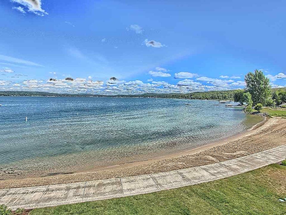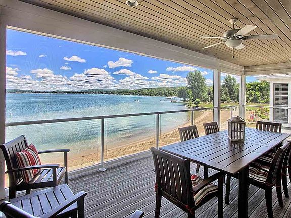 Four bedroom, 4 full & 1/2 half bath Sommerset Pointe villa with elevated sunrise views across Lake Charlevoix from this charming upper unit. Watch the fireworks from your spacious deck. A window wall opens to let summer in, giving your guests more room to mingle. The window wall makes the living area as changeable as the season, and the spacious floor plan creates a delightful living / entertaining space. Amenities include a marina, old-fashioned grocery, wellness center, clubhouse and restaurant.