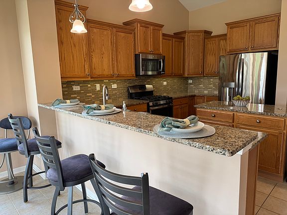 If you like the idea of low maintenance living, but like the freedom of a single family home, this place is for you! Welcome to the 55 and up community of Carillon. This very popular Monte Carlo model has 2 car heated garage, 2 bedrooms and an office. The kitchen features vaulted ceilings, granite counters, and glass backsplash. You have a dining area as well as an eating area in the kitchen, making it a great set up for entertaining! Need some quiet time? Curl up with a book in the sunroom and enjoy all of the bright light streaming in. The second bath has been fitted with a walk-in tub by Ella Bubbles. The living room and office feature motorized blinds which can be controlled with a remote or your phone. The Aprilaire Humidifer was installed in 2024. If you are an outdoor person, you can enjoy grilling with a gas grill hook up in the back on your beautiful extended patio. This lot is very private for the area! Mature landscaping and trees make this a relaxing retreat. The community features a 3 hole golf course (exclusively available for residents and their guests), indoor and outdoor swimming pools, work out room, billiards, community room (with loads of activities), tennis/pickleball courts and more! If you enjoy walks, there are sidewalks throughout the community and approximately 2 miles of walking/biking paths around the community ponds. Snow removal and lawn care are included as well in your monthly assessment, allowing you do just move in and relax! Welcome home!
