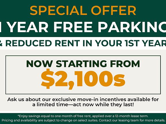 Move in by November 1st, 2025 to receive 1 Year Free Parking with New Reduced Rent in your first year!