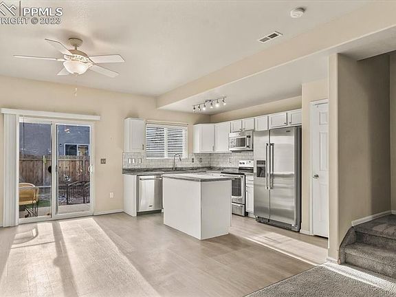 Presenting a generously upgraded 2-bedroom, 3-bathroom townhouse with attached garage that redefines modern living. This residence seamlessly blends style and functionality, offering a lifestyle of unparalleled comfort and sophistication. Step into a thoughtfully designed interior where every detail reflects the careful attention given to enhancements. The open-concept main level showcases upgraded LVP and carpet flooring, creating an inviting atmosphere that extends throughout the home. Large windows bathe the rooms in natural light. The kitchen is a focal point of this residence, featuring top-of-the-line Maytag appliances, generous island, and custom backsplash. Whether you're a culinary enthusiast or enjoy casual dining, this kitchen sets the stage for memorable culinary experiences. A conveniently located 1/2 bath just off the garage round out this level of the home. Each of the two bedrooms has its own private updated bath. The primary suite boasts a beautiful ensuite bathroom with modern fixtures with LVP flooring. The walk-in closet maximizes storage. The spare bath has updated fixtures and features LVP and a new vanity. This home also offers a private outdoor escape. The upgraded landscaping in the spacious yard provides a perfect backdrop for relaxation or outdoor entertaining. Imagine enjoying al fresco dinners or unwinding in your own sanctuary under the stars. Conveniently located providing easy access to local amenities, shopping, dining, entertainment, cultural attractions and quick access to Powers Blvd. Experience the epitome of refined living in this upgraded 2-bedroom, 3-bathroom townhouse. Schedule a showing today and witness firsthand the seamless fusion of contemporary design and elevated functionality. Notable recent upgrades: Tankless water heater, extra attic insulation in 2023. Sink, faucet, backsplash, counter tops and garbage disposal in 2022.