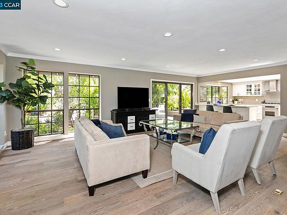 Love where you live! Sitting on nearly an acre of flat land, on top of a secluded hill, which abuts to open space it will feel like you are in your own world. The front yard is beautifully manicured and inviting. Entering through the front door you are captivated by gorgeous wood floors which run through the house. You are pulled into the home by an open floor plan and modern updates which are elegant yet practical. The living room/kitchen combo are seamless and ideal for entertaining friends/family. The kitchen is delightful w/white cabinetry over light granite countertops, tile backsplash and Dacor SS appliances. The skylight bathes the room in light. Through the kitchen you reach the dining room which is rustic with a standalone fireplace, refaced with stone veneer. The primary bedroom is tucked away and is a relaxing getaway. Down the extra-wide hallway are the 3 guest bedrooms and utility room which is big enough for laundry needs as well as a secondary fridge and storage. This home has a 3 car garage including a work area and built in cabinetry. The back yard beckons outdoor gatherings with plenty of room and mature trees providing both beauty and shade. This property is zoned for 2 additional ADU units. Build your own family estate or create rental income.