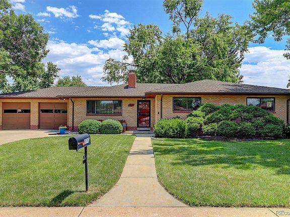 Welcome to 870 South Estes in the Belmar Gardens community in Lakewood. In addition to recent price reduction, the Sellers are offering a $10,000 concession for the Buyer to use for upgrades. This non-HOA neighborhood has wide streets, and this home has a very large, landscaped lot of over a third of an acre (16,460 Sq Feet). As you enter the home, you have a spacious living room with a gas fireplace with doors leading out to a large, covered patio. The adjacent dining room is by the kitchen that also has a good-sized breakfast nook with another door to the patio. This custom-built home has 3 bedrooms on the main floor with 2 bathrooms. The main level has real oak floors and carpeting throughout. Going down the basement, you have an office or a non-conforming bedroom with an ensuite bathroom. A very large, finished family room with a wet bar at one end and built in shelves at the other. Also in the basement is a laundry room with unfinished storage and a boiler and hot water utility area. A large back yard with mature trees and spacious covered patio will let you enjoy our beautiful Colorado outdoors. There has been one owner of the home since it was built. Radon Mitigation system recently installed and a new electrical panel installed.