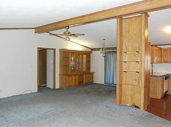 Great location! Large 36 x 40 Detached building w/ 2 regular garage doors to graveled 1/2 of building, 1 large tall overhead door to concrete half of building. FA propane furnace in concrete half, plus a great boat storage (carport attached) Plus an RV sized carport detached. An added bonus is the storm shelter installed outside this mfg home. So worth the look! This property is price attractively to sell!