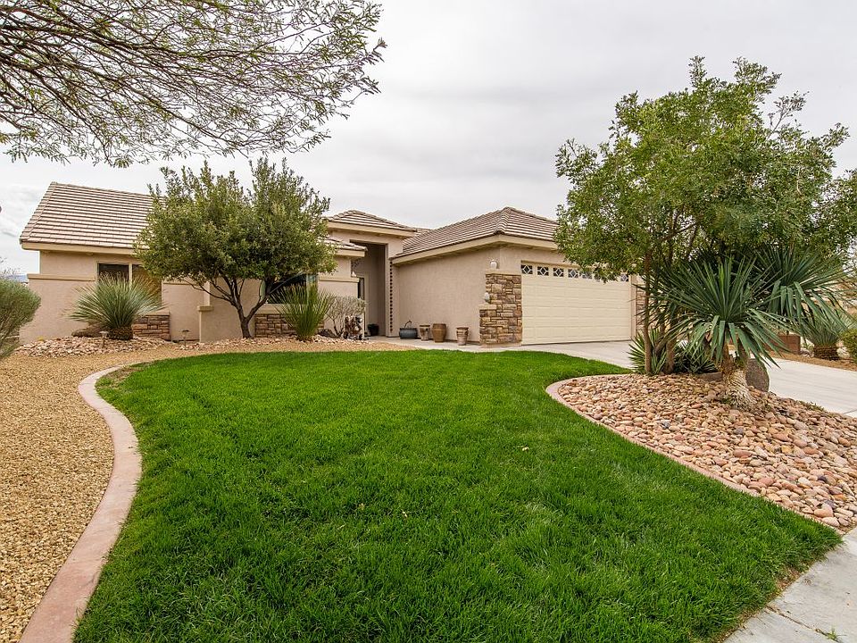 Don't miss out on your chance to secure this incredible home! Well appointed, clean and move in ready this home is just what you've been looking for. Low HOA neighborhood that provides front yard landscaping so the community looks pristine! A carefully groomed front yard invites you into your home, and a block wall fencing around the back yard provides comfort and privacy as you enjoy your outdoor living under the extended pergola. In the kitchen you'll find upgraded cabinetry with upgraded hardware, as well as under cabinet lighting and full rock backsplash that add a touch of elegance to the kitchen; an entertainers delight as the kitchen opens to the living room and also provides an island prep table with extra cabinetry. Generous amounts of storage to be found, including more cabinets and shelving in the large laundry room. Master Suite is conveniently separated from the guest rooms and offers a jetted jacuzzi tub, walk in shower, walk in closet and private commode.