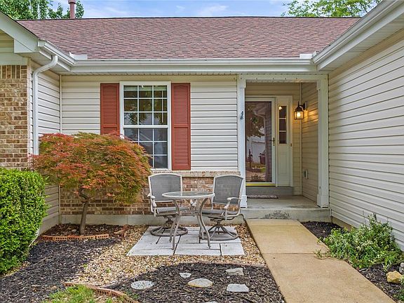 With meticulous curb appeal from a quiet cul-de-sac, this ranch home in Eureka delivers! Vaulted great room & tons of natural light from windows overlooking wooded back yard give the open floorplan its spacious feel. Wood burning fireplace is a focal point. The flow is excellent for entertaining, with a breakfast bar and dining area open to kitchen with plenty of counter space. Three bedrooms including a primary suite with vaulted ceiling, large walk-in closet & full bath w/double sink & separate tub & shower. Another full bath completes floor. Professionally finished lower level offers a huge 31'x18' rec room with wet bar, sleeping area/den with walk-in closet, a half bath + laundry & storage area. Walk out to partially covered patio and enjoy the privacy. Architectural shingle roof, gutters, and downspouts in 2020. Two car garage. 5-10 minute drive to Rockwood Schools. Close to Greensfelder Park with hiking trails & playground & Hilltop Park with lake. Showings start on the 22nd