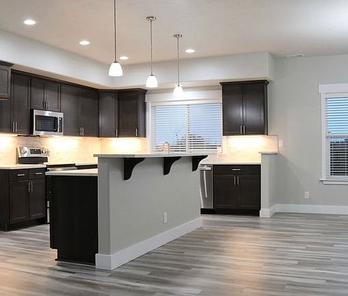 Beautiful new home build by Frank Gehring. 4 bed 2 bath open concept . This home features quality throughout. Stunning covered back patio, fenced, landscaped and TUGS. Many standard features that would otherwise be considered upgrades. Quartz countertops throughout, laminate flooring, blinds, water softener, tile flooring in baths, double headed walking marble shower, laundry sink. Truly a turn key home just bring the Refrigerator!! Call your agent for a showing today!!