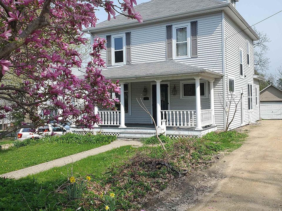 4 bedroom, 1.5 bath 2 story home with an extra large inviting open, covered front porch in which leads into the front foyer with original wood open staircase, leaded glass windows, hardwood flooring throughout, pocket doors, appliances included. Upper level has 3 bedrooms, full bath with jet tub, finished walkup attic currently used for additional bedroom/play area. Home and garage are situated on a long .25 acre lot(44'x300'est) with an abundance of perennials and additional access to back of lot off Fremont St. Located just past the UWP Center for the Arts. Measurements estimated-buyer to measure if wanting exact. Home is currently leased Until May 2023 $1300 mo. Make this your next investment property.