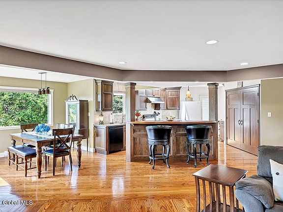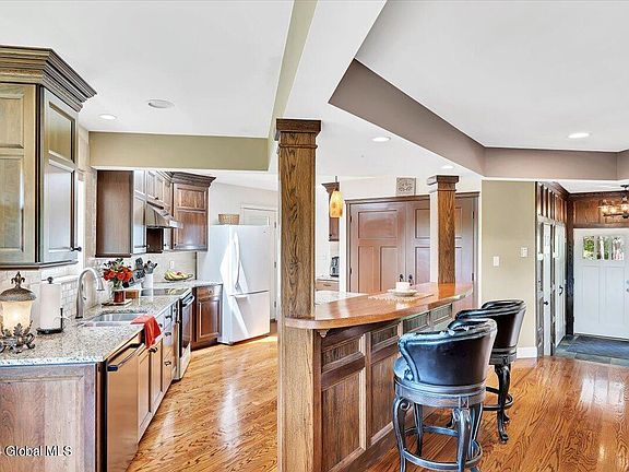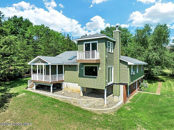Welcome to a home surrounded by peace and serenity. A long tree lined driveway brings you to a completely remodeled 3 bedroom home situated in a park like setting. Slate flooring and bluestone steps in the foyer lead to a kitchen featuring granite countertops and custom trimwork. A first floor primary bedroom connected to a tiled bath complete with soaking jet tub. An open floor plan great for entertaining including a large living room with a wood stove for those chilly nights, and a dining with a view for miles. The lower level features two additional bedrooms that walkout to the backyard. Relax on the composite deck off the kitchen, or play horseshoes on the three pits outside. A large 2 car garage is attached with a detached 1 car as well.