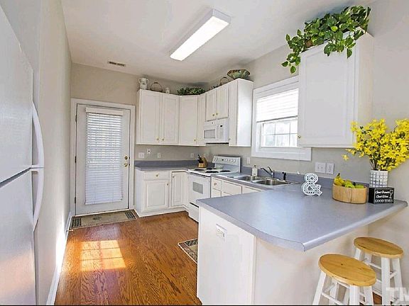 WONDERFUL community, PRISTINE CONDITION! Charming ranch style end unit townhome! Open floor plan features living room with vaulted ceilings, gas log fireplace and dining room with hardwood floors throughout the main living areas. Spacious kitchen has plenty of cabinet space and breakfast bar. Master suite has large walk in closet and private bathroom. Back patio is perfect for entertaining. HURRY! PETS NEGOTIABLE. All rental APPLICATIONS handled by RHYNE MANAGEMENT.