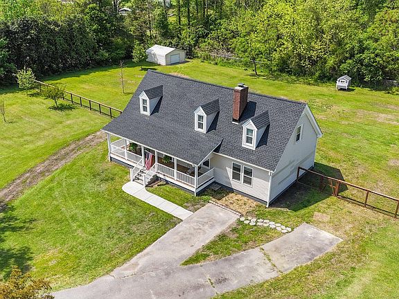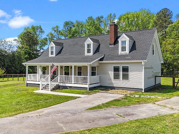 Welcome to your peaceful retreat nestled on 2 picturesque acres with no HOA! Within 25 minutes of Downtown Raleigh and 15 minutes to White Oak Shopping Center! This 3-bedroom, 3-bathroom home welcomes you with a classic rocking chair front porch, perfect for watching hummingbirds flutter by and soaking in the beauty of mature fruit trees and stunning Japanese cherry blossoms. Step inside to discover dark bamboo flooring that flows throughout the home. The spacious kitchen is a dream for any home chef, featuring abundant storage and a stylish tile backsplash. Downstairs, a comfortable guest bedroom offers convenience and privacy for visitors. The heart of the home is the expansive living area, anchored by a warm, wood-burning fireplace. Upstairs, the primary suite is a true retreat, boasting vaulted ceilings and a striking exposed brick wall that adds character and elegance. Out back, a huge fenced-in yard offers space to roam, play, or garden, along with a handy storage shed for all your tools and toys. Enjoy the best of both worlds with close proximity to both the city and serene countryside. This home is more than a place to live—it's a place to love. Don't miss your chance to call it yours!