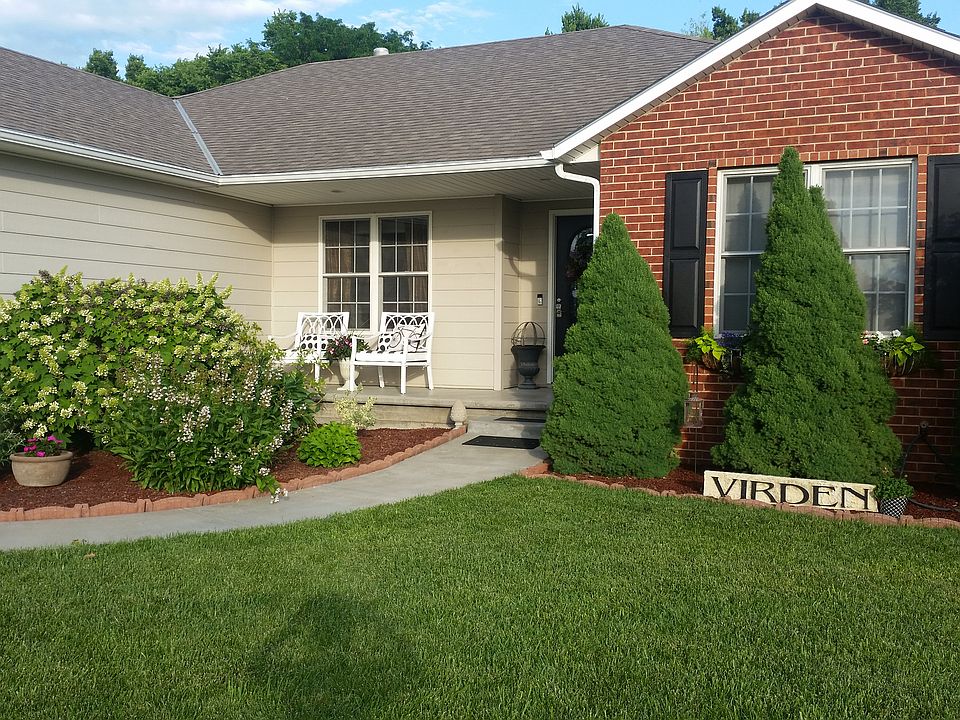 Built in 2003, beautiful ranch style vaulted ceiling home. This original owner home is approximately 3200 square feet with full finished basement. Home is 100% smoke and animal free. Total of 5 bedrooms and 3 full baths. Solid surface cabinet tops in kitchen, custom built cabinets and stainless steel appliances. Laundry room has wash basin, cabinets and brand new washer dryer. Master bath includes whirlpool tub, separate shower, double vanity and custom walk-in closet. Basement features a spacious "SUPERBOWL READY", theater room with a 7.5 foot screen TV, cabinet area, wood pellet stove, workout room with rubber flooring, 2 additional bedrooms and full bath. Anderson windows throughout and a 2 car garage. Outside you have a large covered deck with misters and brick patio perfect for entertaining. With creek behind and nicely landscaped located in wonderful, family oriented Eagles Landing neighborhood. This neighborhood amenities include walking trail, shelter area for picnics, parties and a park area for children to play as well as a basketball court. Please call for a private viewing today. 785-230-2686