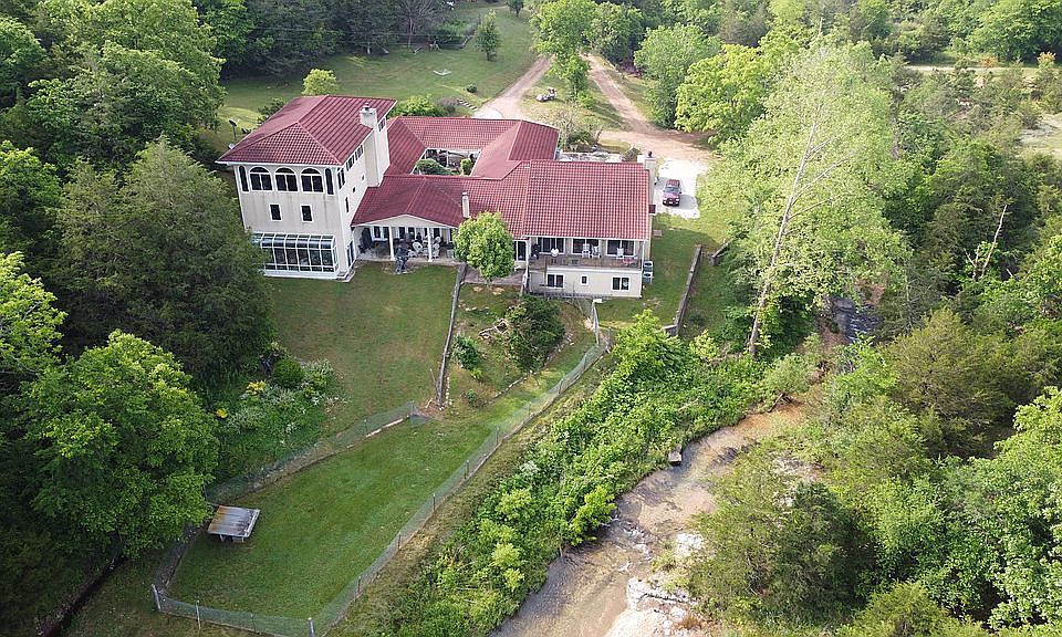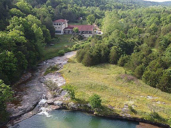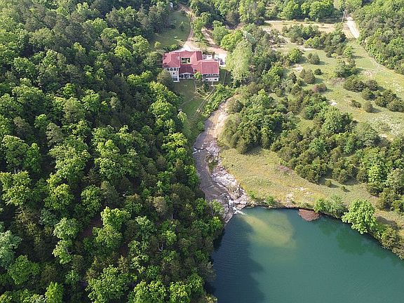 11,000 square foot Beaver Lake estate sitting on 700 acres, 1/4 mile of waterfront, three boat slips in private dock. Home has many custom building features including exotic wood floors and stairs, vaulted ceilings with massive exposed wood beams, in floor radiant heating throughout, five AC units, and a whole house back up generator. A beautiful four season stream runs next to the house. Land has caves, springs, pasture, hills, and woods. There is a 3000 square foot workshop as well.