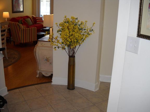 Cheerful, bright, open living, dining and kitchen area. Opens onto deck overlooking the garden area. Quiet, peaceful and serene. Pool is far enough away to see in the fall, winter and spring, but not close enough to be bothered with pool noise in the summer. You can see the parking deck and building 6, but not close enough to be bothered. The dining table pulls out to make seating for six, thus the six dining room chairs. Bamboo flooring, crown molding in the living and dining area, tile in kitchen, foyer, bathrooms, carpet in the two bedrooms. The unit has two master bedrooms separated by the living, dining and kitchen area. The bedroom to the west, also with exit to deck, is currently being used for an office and storage for wheelchairs, rollator, etc.