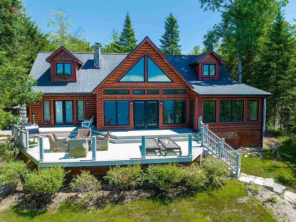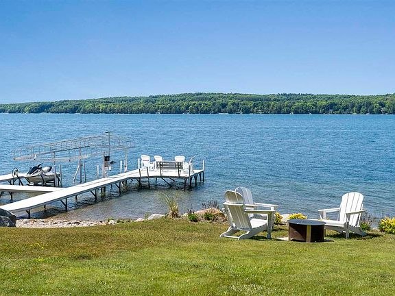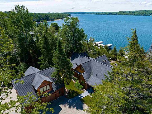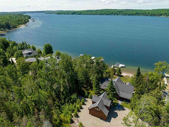 Classy and comfortable are two perfect adjectives to describe this cedar log sided home on the quiet waters of the south arm of Lake Charlevoix. Featuring 4 bedrooms, 3 bathrooms, a roomy loft and finished guest quarters, all located at the end of a private road to give privacy and serenity, ending your journey north at endless piece of mind. The home sits perched up from the water, making westerly views over the larger part of the arm clear for miles. The garage includes a 575 sq. ft. guest quarters complete with a full bathroom. Off the main bedroom is a an alluring sunroom for quiet reading or napping while listening to the waves break 75 feet away. Entertain your masses of family and friends on your widespread lakeside deck and if your feeling free, run down the front lawn onto the dock and canon ball into the renewing waters of the beloved Lake Charlevoix! Welcome Home!